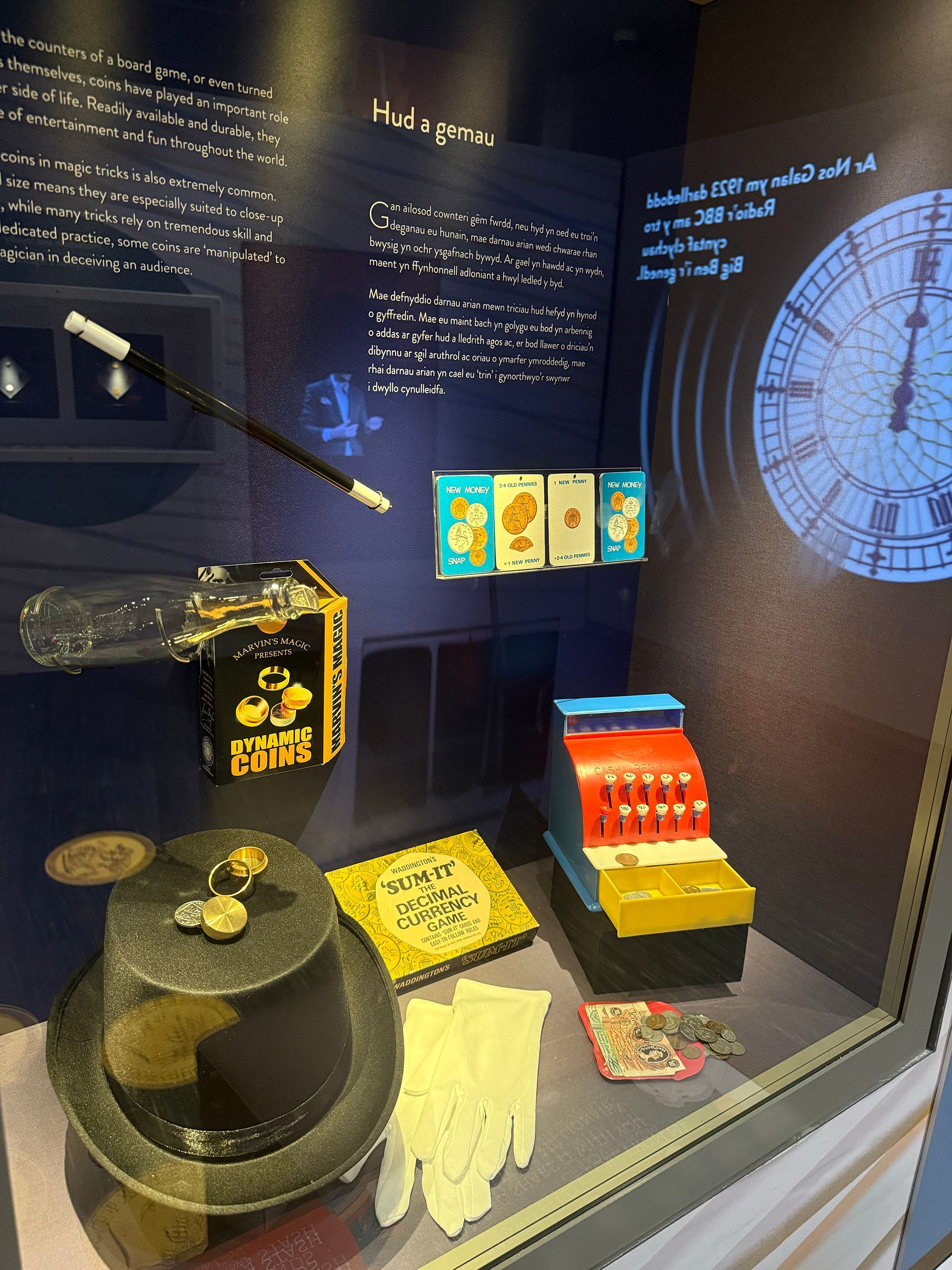 The display tells stories of some of these uses in objects, images, film and animation. From tossing coins at the start of a football match or carrying them as lucky charms, to use in games and magic tricks, for conveying political messages and warding off disease.