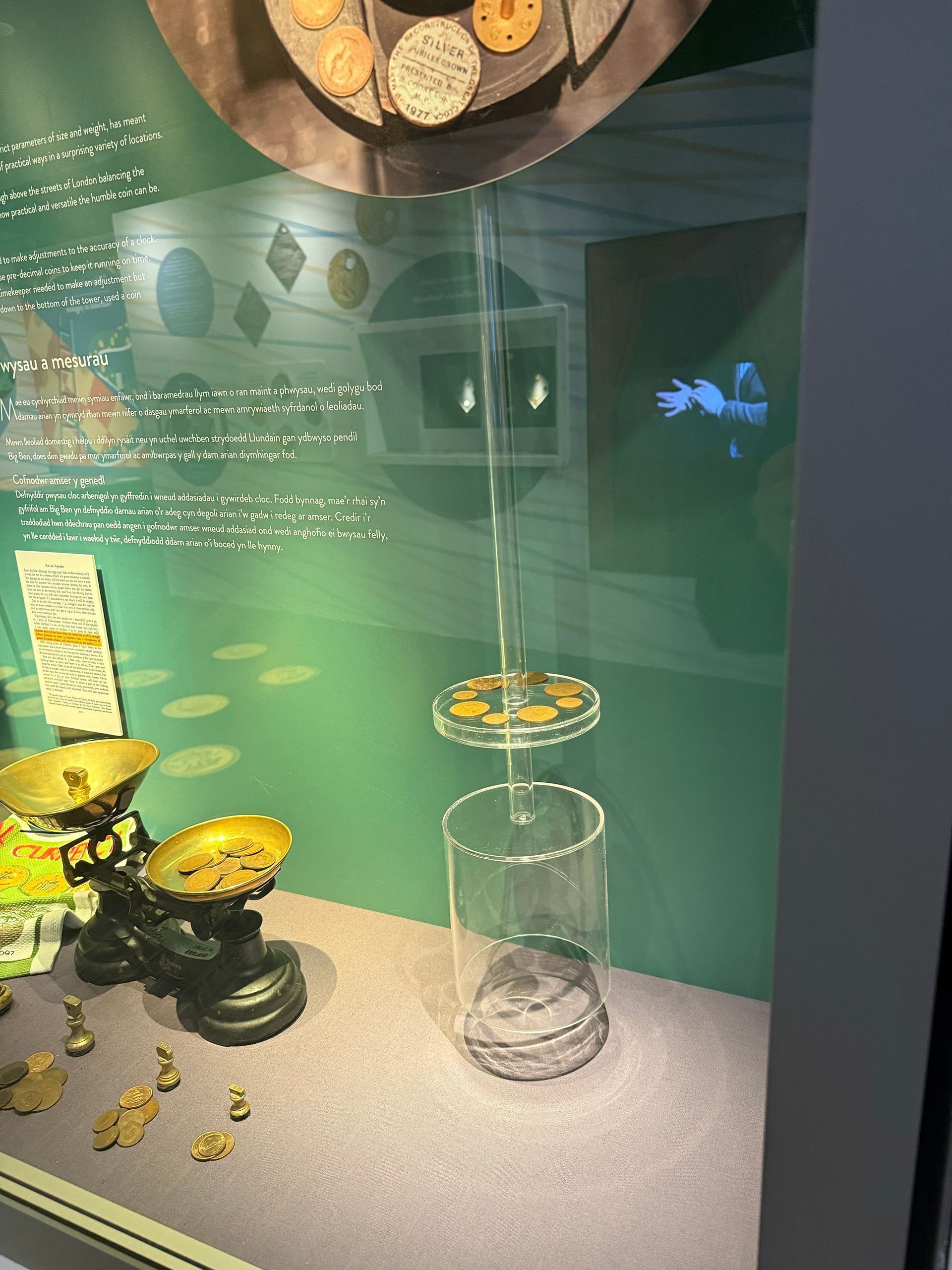 We also created our first kinetic object mount, a swinging pendulum to show how pre-decimal pennies are used to regulate the clock's mechanism.